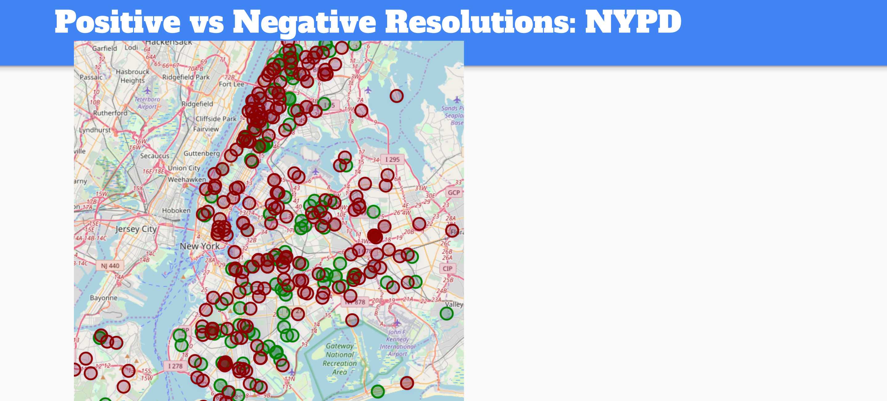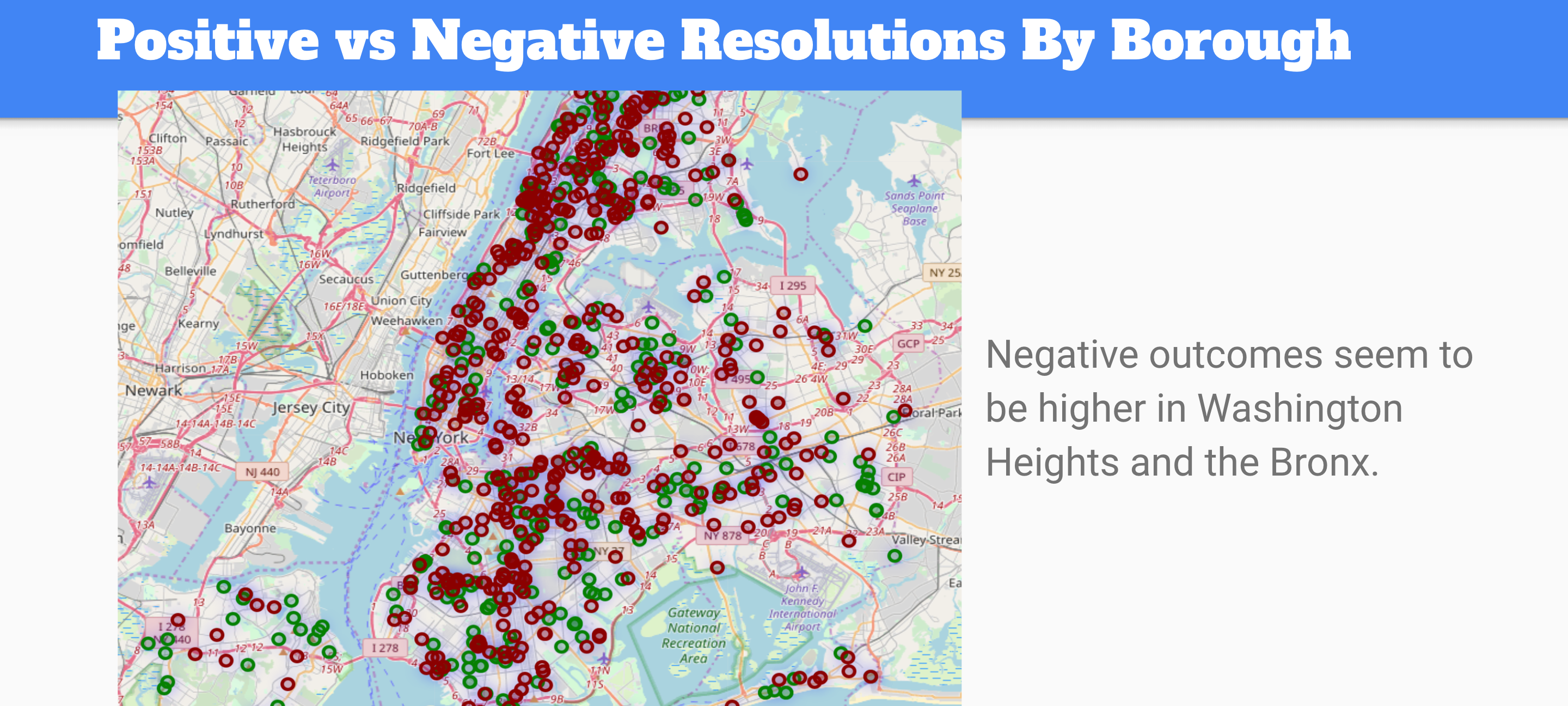 Using Folium, I created some map visualizations showing the Positive and Negative Resolutions for different features in the 311 Service Requests dataset.